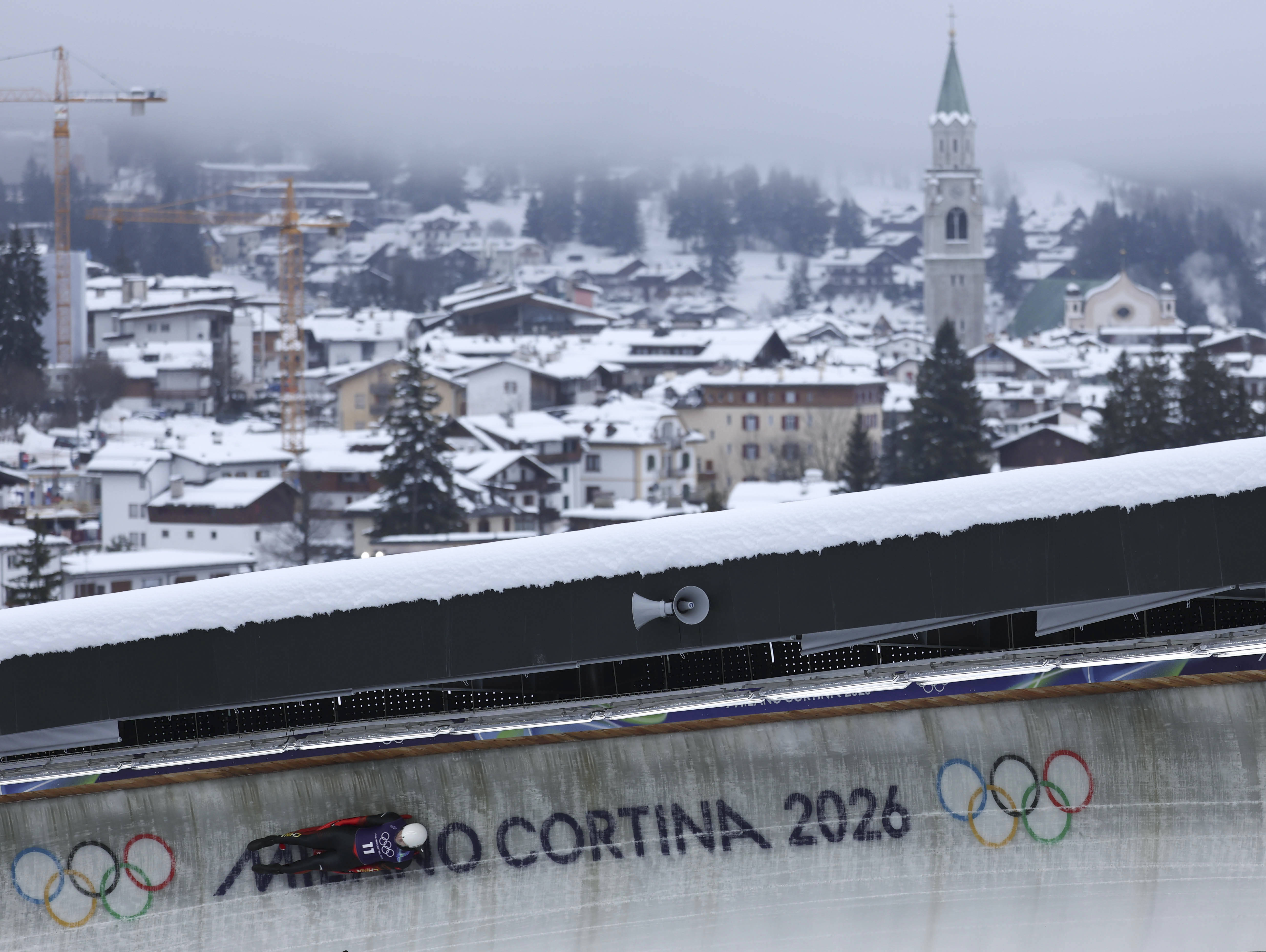 中国选手鲍振宇在米兰-科尔蒂纳冬奥会训练中。新华社记者 丁旭 摄雪橇“拓荒”