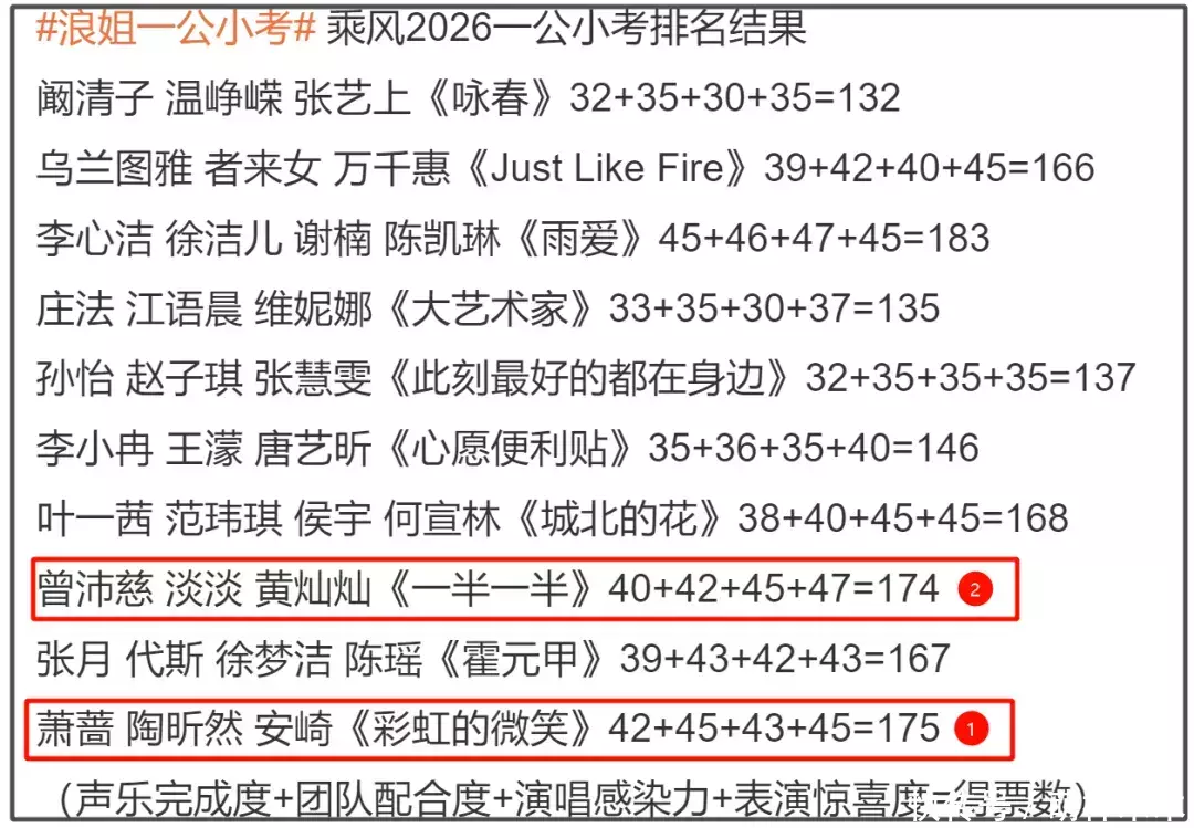 而这次芒果似乎又力捧曾沛慈,一公小考出色的姐姐有很多,小考最终决出的第一名是萧蔷组,这组明星热度不高,但没想到最终会以一分之差赢了曾沛慈组,本来是很励志的一件事。