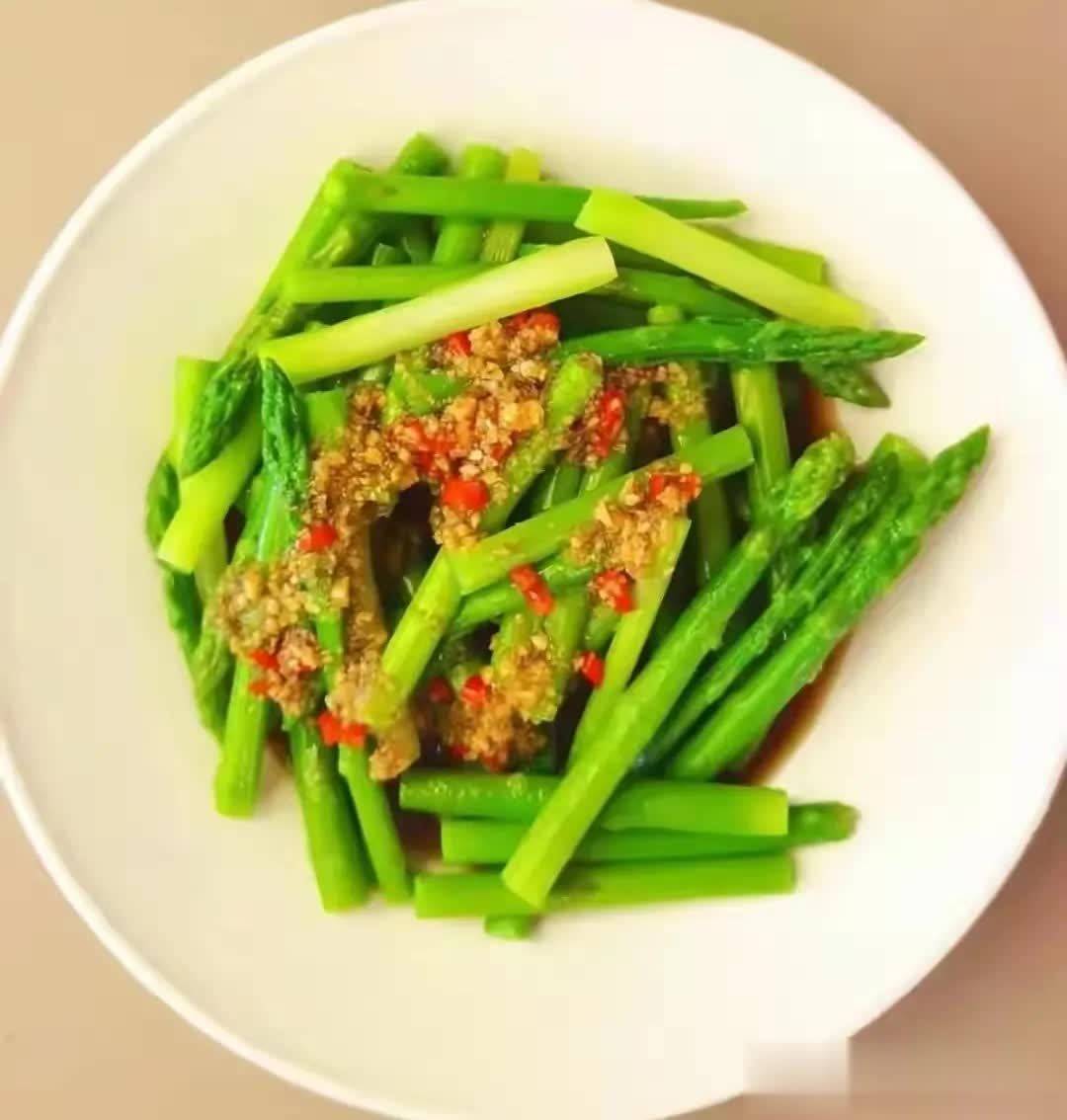 食材:芦笋、蒜、盐、食用油。